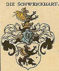 Argent, a griffin sable crowned and winged Or, die Schweickhrt (92).